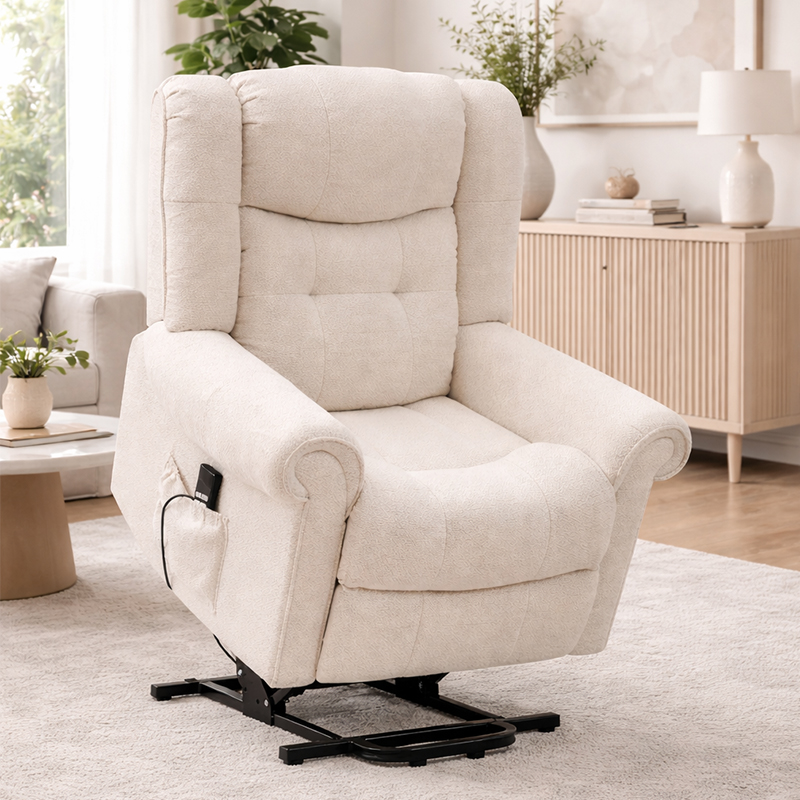 Equipada con motores duales, esta silla elevadora se reclina suavemente cerca de 180° y se levanta suavemente para ayudar a los usuarios a ponerse de pie con facilidad. Disfrute de la relajación de todo el cuerpo con masaje de 8 puntos, calentamiento lumbar y bolsillos laterales—, todo en un diseño fácil de usar que es fácil de ensamblar sin necesidad de herramientas.