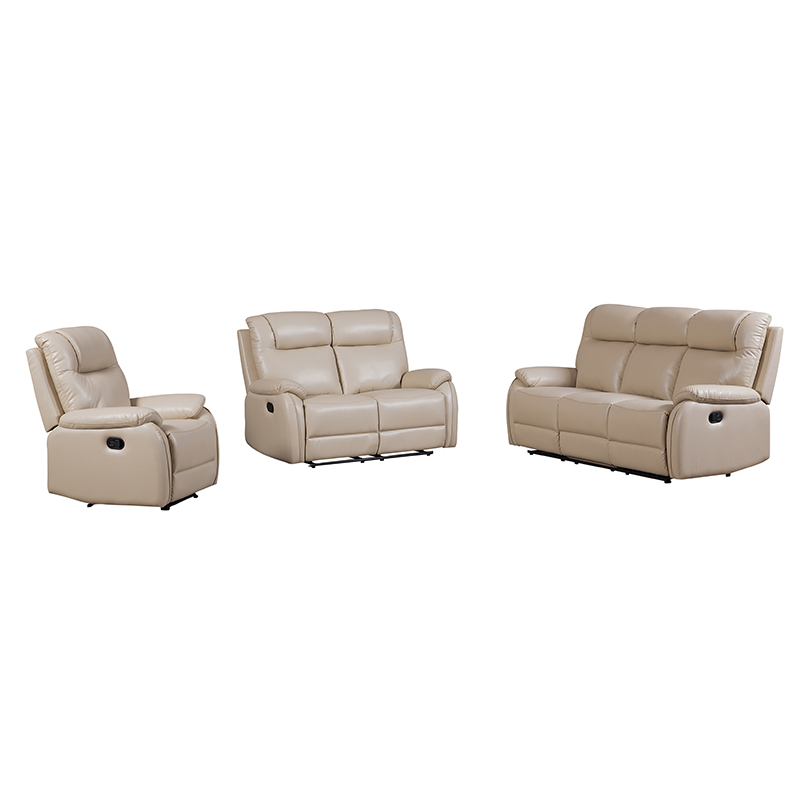Anji Xuanbo Household Co., Ltd. Hogar / Productos / Sofá de esquina / Sofá de esquina manual / Juego de sofás reclinables manuales de cuero de 3 piezas