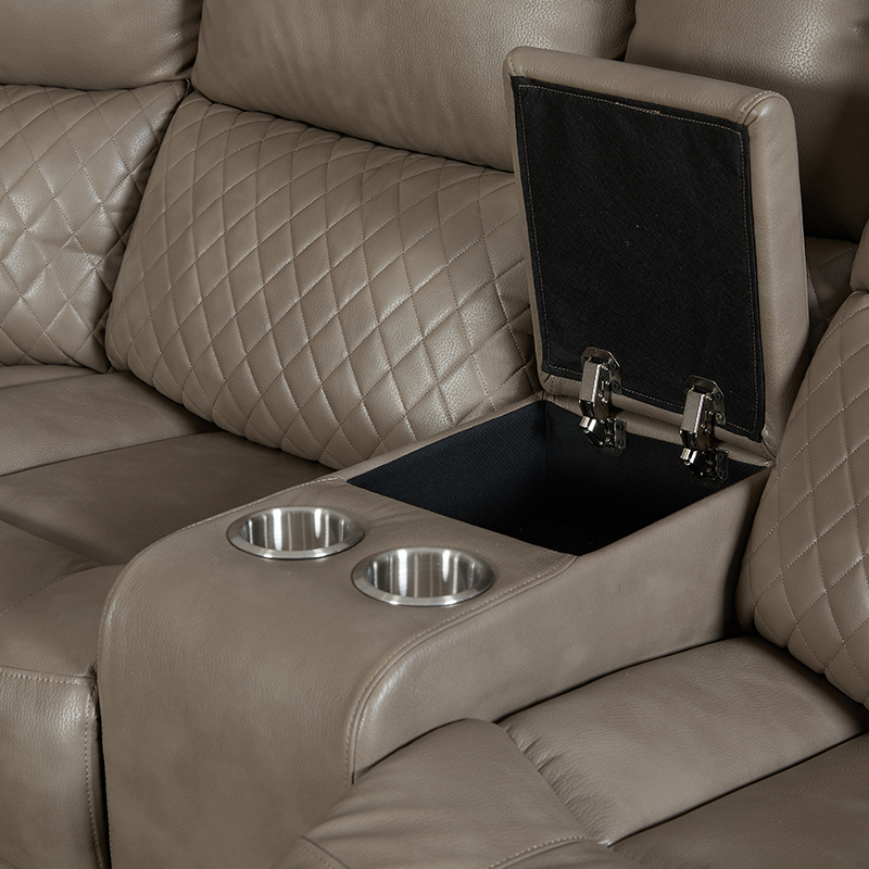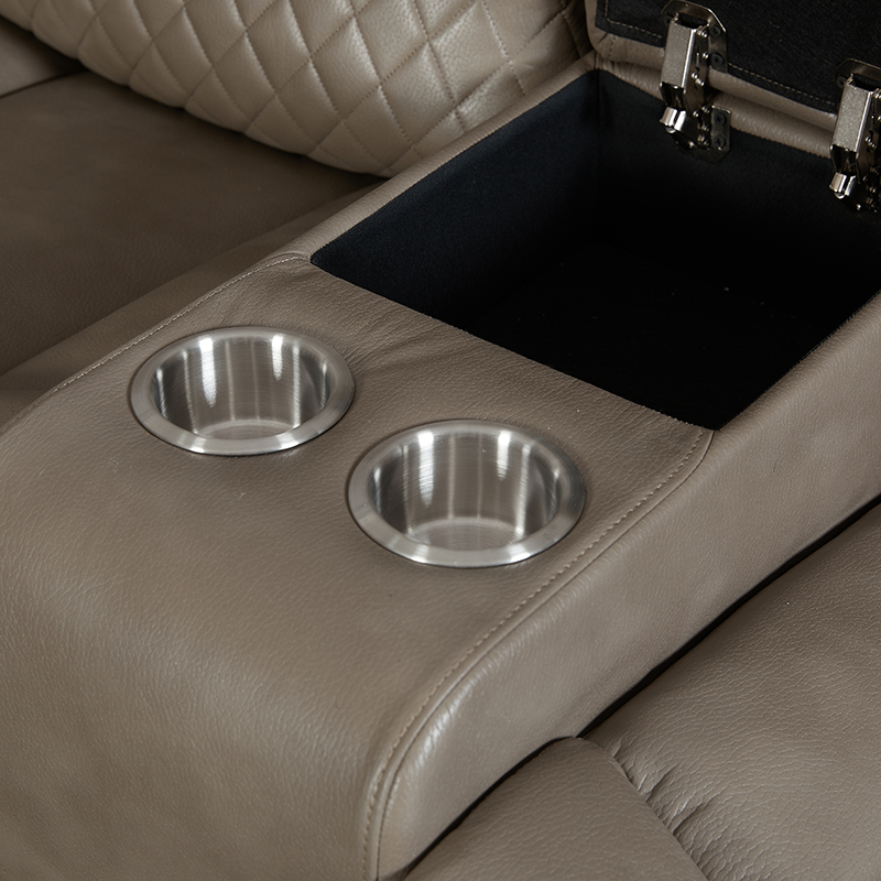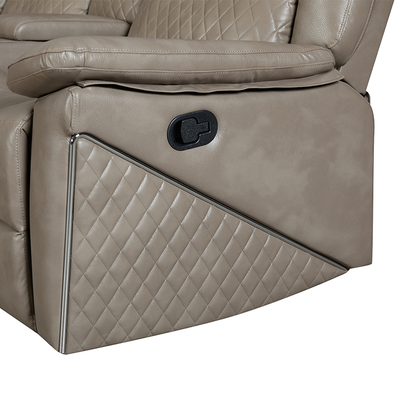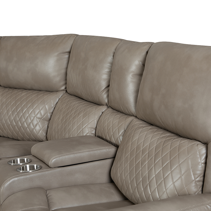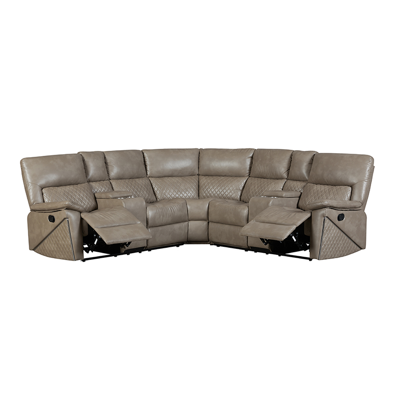 Anji Xuanbo Household Co., Ltd. Hogar / Productos / Sofá de esquina / Sofá de esquina manual / Sofá esquinero seccional reclinable manual de 5 piezas con portavasos en color marrón