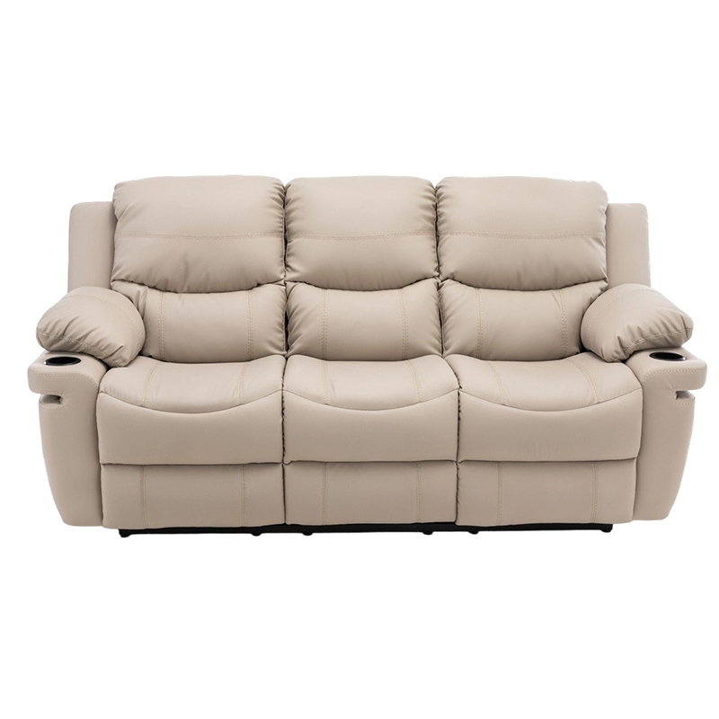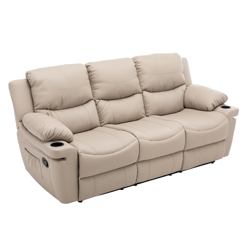 Este sofá reclinable cuenta con un inteligente respaldo central desplegable y prácticos portavasos incorporados. Envuelto en una lujosa tela de cuero, este vehículo de tres plazas irradia un aire de sofisticación y estilo. Disfrute de los lujosos cojines acolchados que brindan una comodidad inigualable. El robusto reposapiés garantiza un soporte duradero para una experiencia verdaderamente relajante. Ideal para personas de todas las edades, este sofá versátil es perfecto para relajarse con un libro, ponerse al día con sus programas favoritos o disfrutar de una siesta reparadora. Transforma tu espacio vital y acepta momentos de pura relajación.