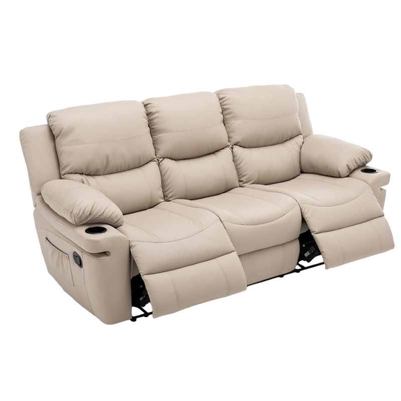 Sofá reclinable de cuero de 85,4" y 3 plazas con reposabrazos mullidos