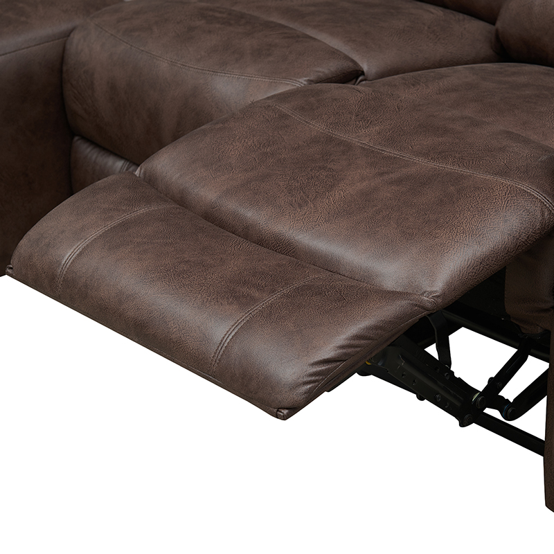 Este sofá seccional tiene un diseño único y es adecuado para un rincón del salón o espacio de ocio. Ya sea ver una película, salir de fiesta o relajarse, puede brindarles a los usuarios una experiencia cómoda y conveniente. El sofá está equipado con una función de reclinación manual. Los usuarios pueden ajustar su postura al sentarse según sus necesidades. Mediante una operación sencilla, pueden elegir libremente el ángulo más cómodo y disfrutar de un agradable tiempo de descanso.